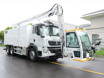 يذيب الجليد والثلج بسرعة من خلال تدفق الغاز عالي الحرارة أو سائل التذويب الساخن. على سبيل المثال، 'كاسحة الثلوج العاصفة' المستخدمة في مطار ووهان تيانخه تعتمد تكنولوجيا المحرك النفاث. يمكن للفوهة أن تولد قوة الرياح من المستوى 10 وموجات الحرارة من 100 درجة مئوية. هناك حاجة إلى ثلاث مركبات فقط لمدرج واحد لاستكمال إزالة الجليد عن سطح المدرج في وقت واحد يمكن أن يصل ارتفاع ذراع الرافعة لمركبة إزالة الجليد الكبيرة إلى 30 مترًا، وهي قادرة على تقديم الخدمات لطائرات الركاب الكبيرة جدًا مثل A380، وتجنب الأجزاء الرئيسية للطائرة بدقة (مثل أنبوب السحب الخاص بوحدة APU) من خلال نظام تحديد المواقع بالليزر